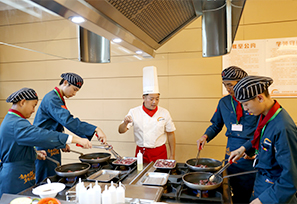 实操理论相结合的教育模式,拥有中餐模拟酒店、西点裱花、蛋糕烘焙、西餐烹调等几十间教室,满足学生学习需求!